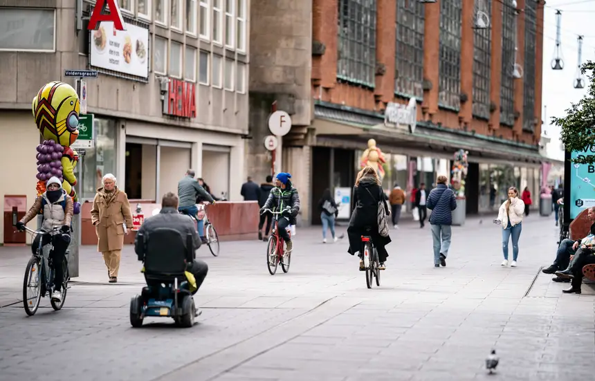 Transeuntes no centro de Haia, a 3 de abril de 2020. As medidas de confinamento de muitos países não foram adotadas na Holanda