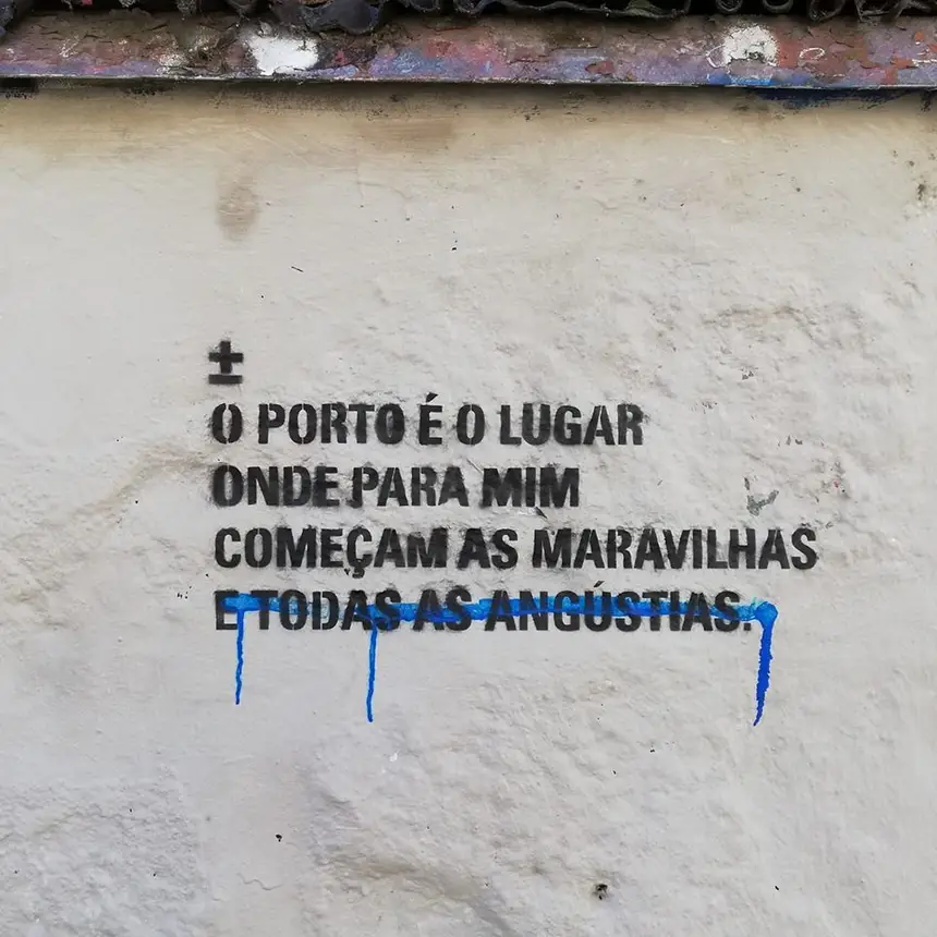 “O que fiz foi pegar em algumas frases de autores conhecidos — do Porto ou que escreveram sobre o Porto — e deixar à vista aquilo que interessa; que são coisas positivas que favorecem o turismo e a marca da cidade, riscando aquilo que não interessa. Essa é a crítica, tantas vezes abafada ou menosprezada”, explica, ao Expresso, Miguel Januário, que na noite de 17 de fevereiro pintou, sozinho, as quatro frases na Praça dos Poveiros.