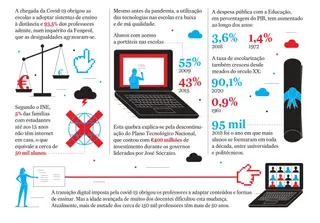 No entanto, a pandemia veio também revelar ineficiências do sistema educativo que são antigas e estruturais. Por um lado, a falta de formação contínua dos docentes, a par com o (ainda) baixo nível de literacia digital e, por outro, a existência de equipamentos informáticos e de acesso à internet obsoletos, na grande maioria das escolas. “O pouco investimento na formação de professores para se adaptarem ao ensino à distância, a incapacidade de responder às necessidades dos alunos e das famílias no acesso a recursos digitais e a obsolescência das infraestruturas e equipamentos são algumas das insuficiências agora reveladas”, aponta David Justino, professor na FCSH e ex-ministro da Educação.