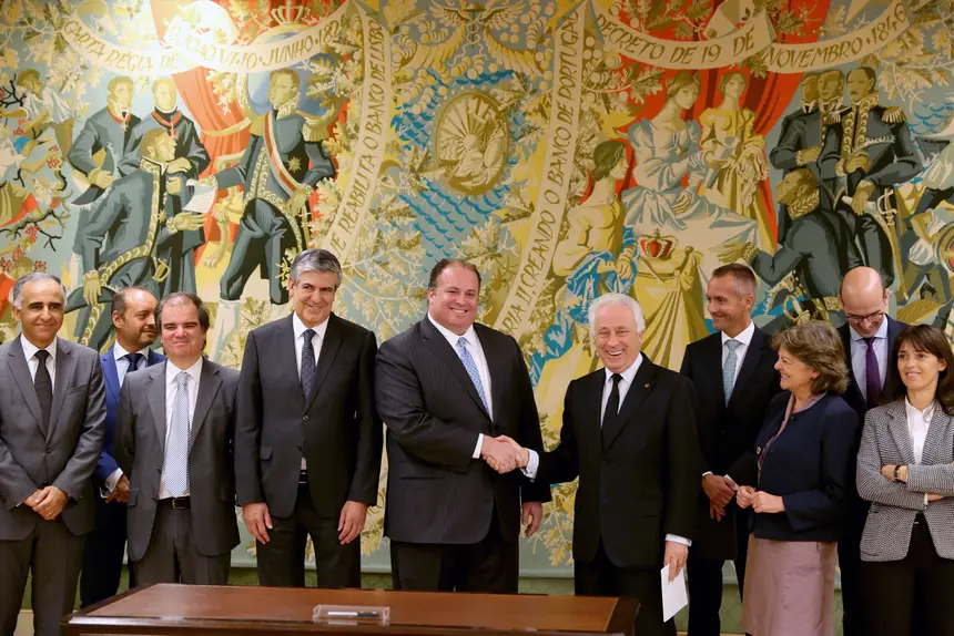 Donald Quintin, diretor-geral do fundo Lone Star, e Carlos Costa, governador do Banco de Portugal, formalizaram esta manhã o negócio do Novo Banco