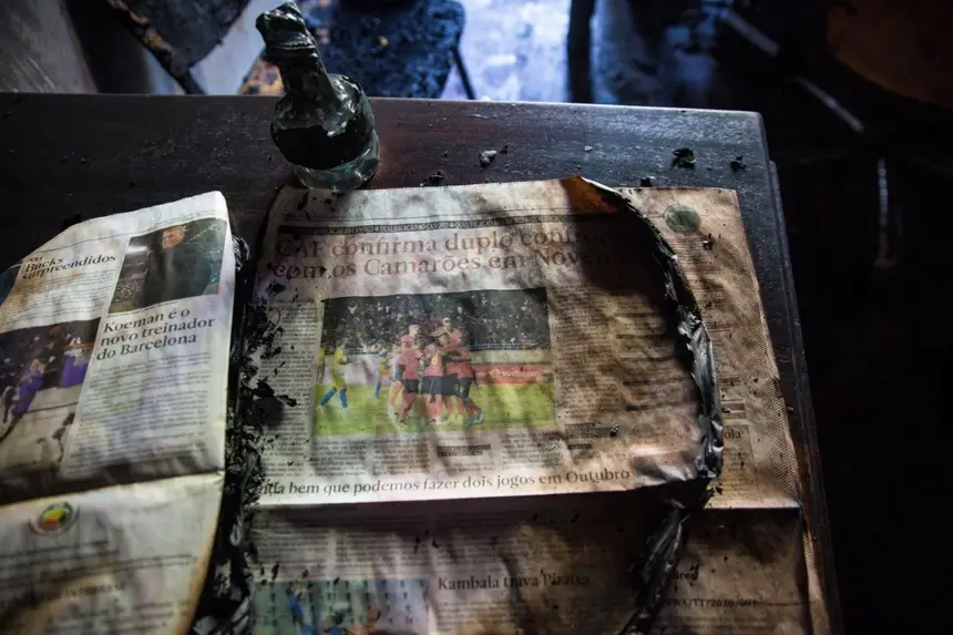 Instalações do jornal "Canal de Moçambique", em Maputo, após o fogo posto